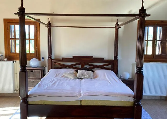 Die Villa bietet eine Essecke und einen Essbereich im Freien mit Ausstattung zur Kaffee- & Teezubereitung. Es gibt auch einen Wasserkocher, einen Kühlschrank und Küchenutensilien, damit Sie sich Ihr eigenes Essen zubereiten können. Das Restaurant XL Beach & Bar Restaurant bietet griechische Gerichte an und befindet sich etwa 6 Gehminuten von hier entfernt.